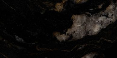 This deepest obsidian and sable granite is punctuated by a blizzard of snow-white streaks and flurries.