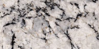 Delicatus White Granite features a soft white background with beautiful contrasting rich, dark veins.